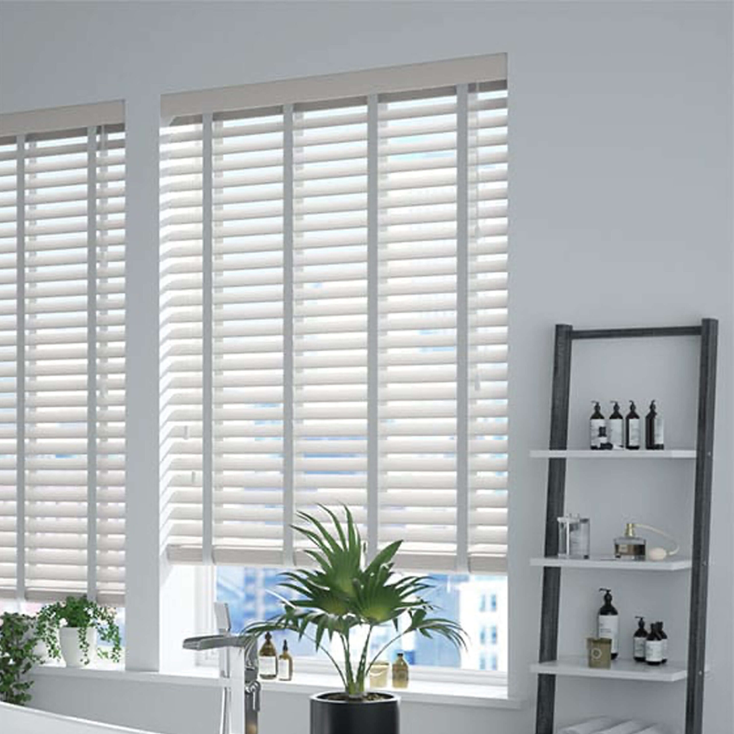 Warm, homely and wonderfully light, our faux wood blind with coloured fabric tape is as stylish as they come. The smooth slats are a creamy off-white which adds a little country chic to your home.